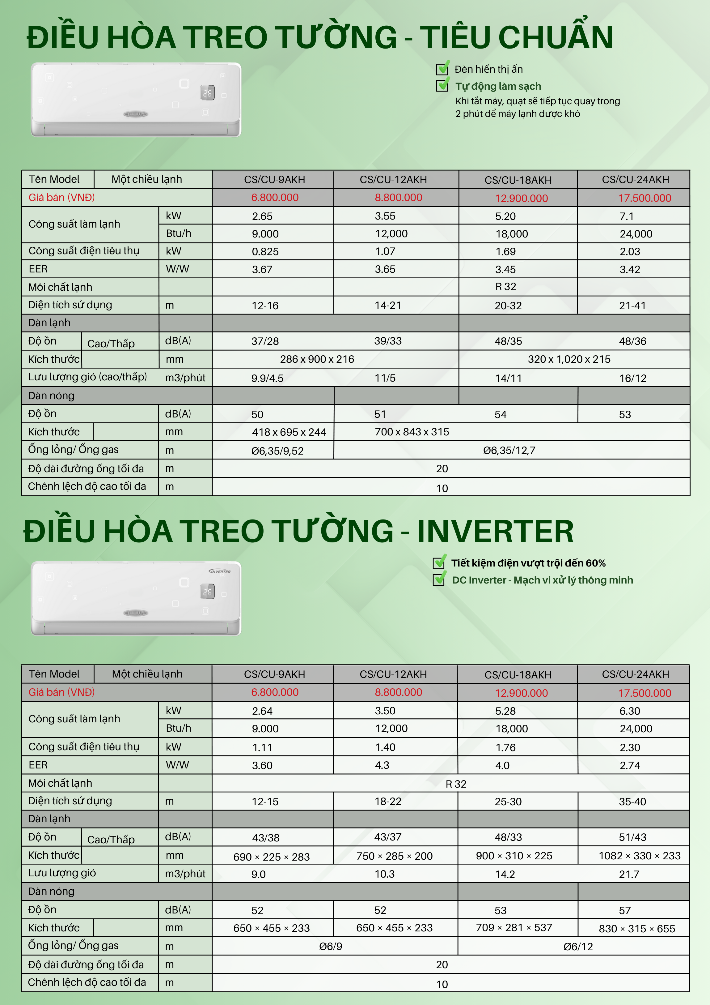 👉 Tiêu chuẩn & Inverter: ĐỒNG GIÁ từ 6.800.000 VNĐ
