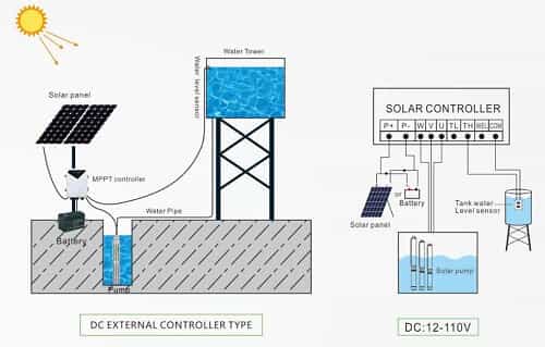 Khác với các bơm điện thông thường, bơm năng lượng mặt trời sẽ cần thêm hệ thống pin mặt trời. Để đảm bảo cho bơm chạy trơn tru, ổn định thì hệ thống pin mặt trời rất quan trọng. Hiện nay, pin mặt trời gồm có ba loại chính: màng mỏng, mono và poly. Pin mặt trời công nghệ mono có giá thành cao nhất và hiệu suất cao nhất và luôn được ECO Solar lựa chọn để lắp đặt cho khách hàng. Để đảm bảo hệ thống chạy ổn định thì công suất dàn pin thường phải lớn hơn công suất của bơm, thông thường chọn Ppin PV =(1.3 ÷1.5) X Pbơm. Ngoài ra còn theo lượng bức xạ của từng vùng mà đưa ra lựa chọn công suất dàn pin và số lượng tấm pin phù hợp.