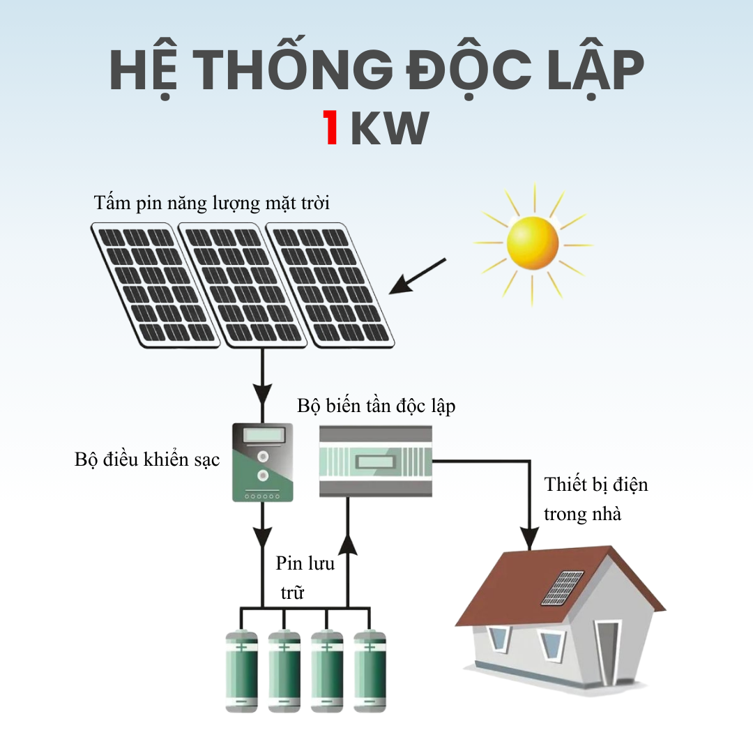 HỆ THỐNG DỰ PHÒNG ĐIỆN NĂNG LƯỢNG MẶT TRỜI ĐỘC LẬP 1KW